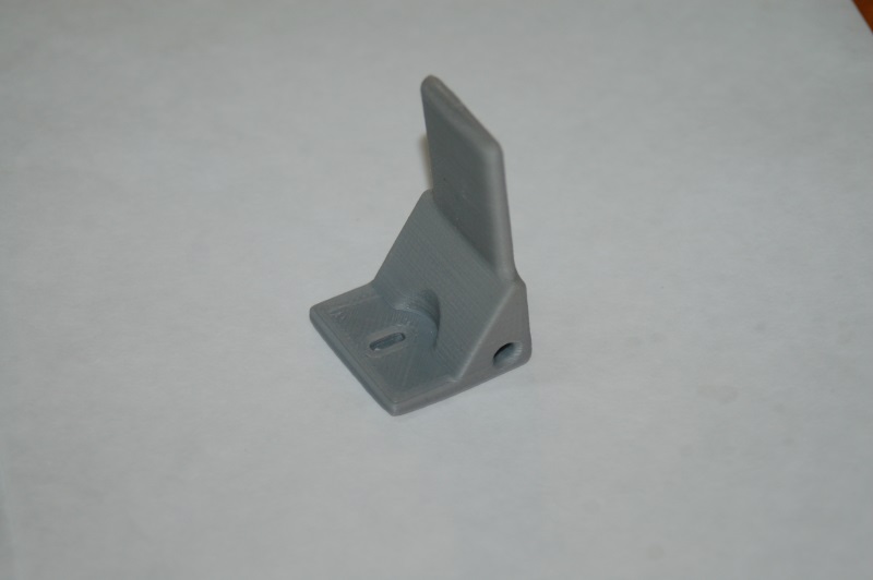 The grey parts in the image were printed on my 3D printer (a Rostock MAX by SeeMeCNC – http://www.seemecnc.com). The center point holds an LM8UU linear bearing. The bearing is held in place using a pair of wire ties. Since the bearing doesn’t receive any twisting or side-force, this is a perfectly adequate method of retaining the bearing in the mount.